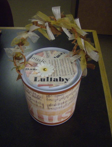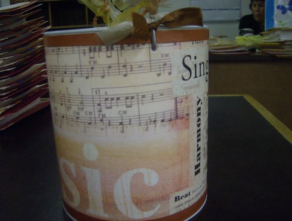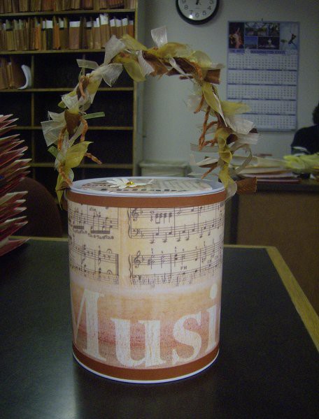 So...this pretty girl that was about to turn 18 at the time just happened to love music. She was in band and she played the oboe. Beautifully, I might add. When I got to know her a little and realized just what a beautiful person, inside and out, that she was, I knew the time had come to use that paper I'd been hanging on to for dear life. Enter Ashley's music can. I'd love to give you a more exciting and ear-catching name, but I don't have one. Now, before you go getting all hot and bothered that I don't have a really cool name, just remember I'm still unwell. The fact that I've had four years to come up with a name is irrelevant.